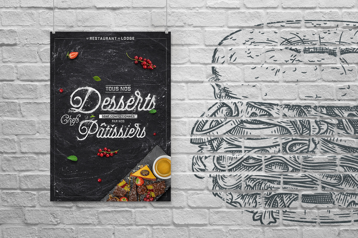 Задача: Создать ключевой визуал и иллюстрации для ресторана расположенного в альпийских горах.