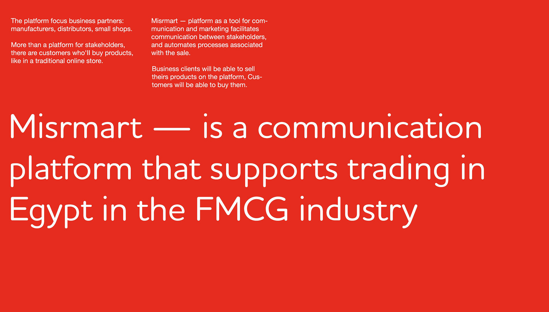 Misrmart — is а communication platform that supports trading in Egypt in the FMCG industry